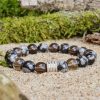 Bracciale in Ossidiana Fiocco di Neve e Quarzo Affumicato
